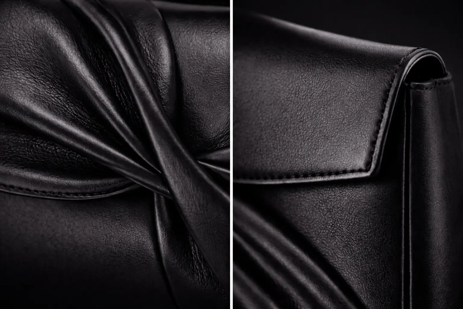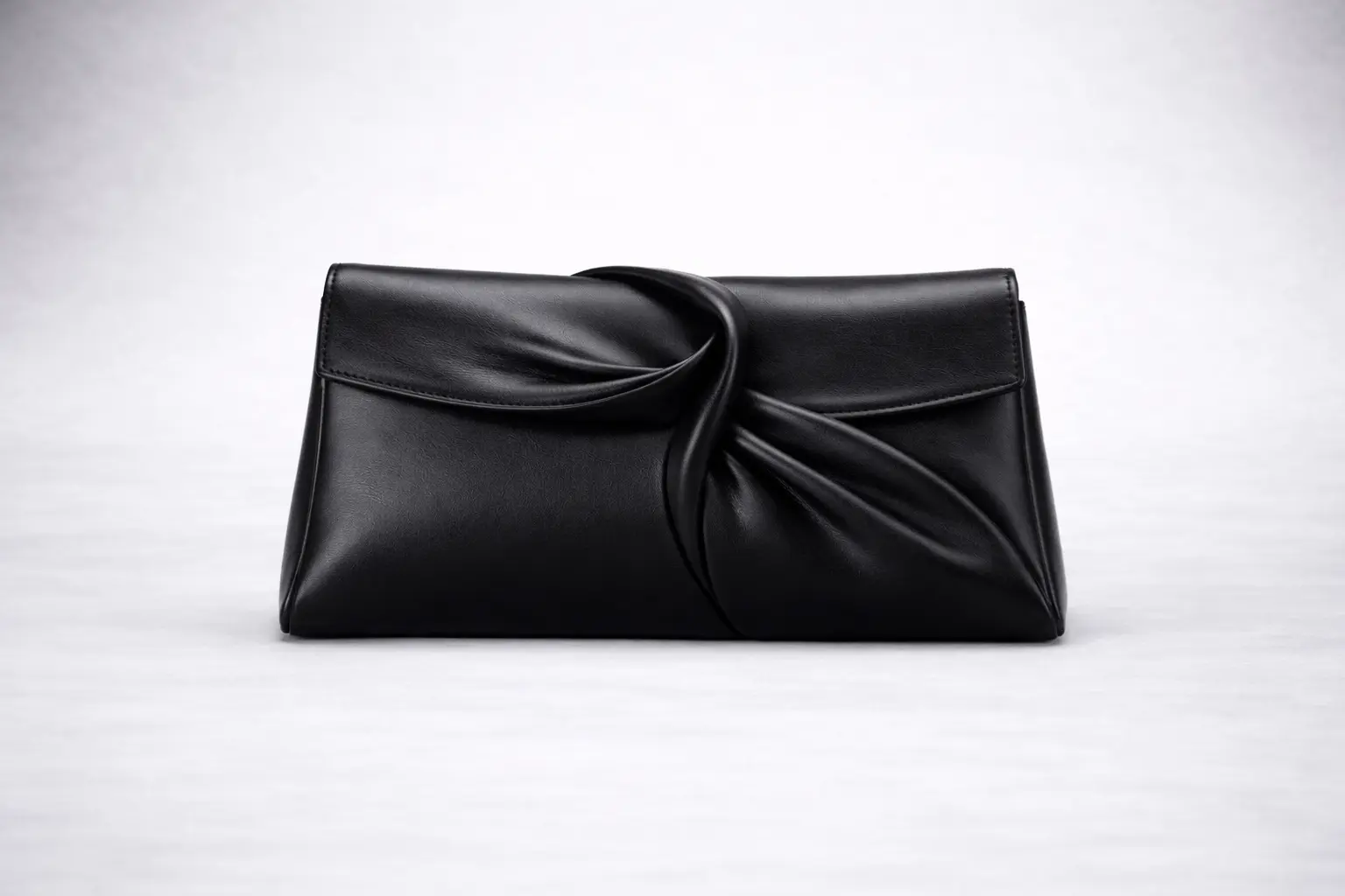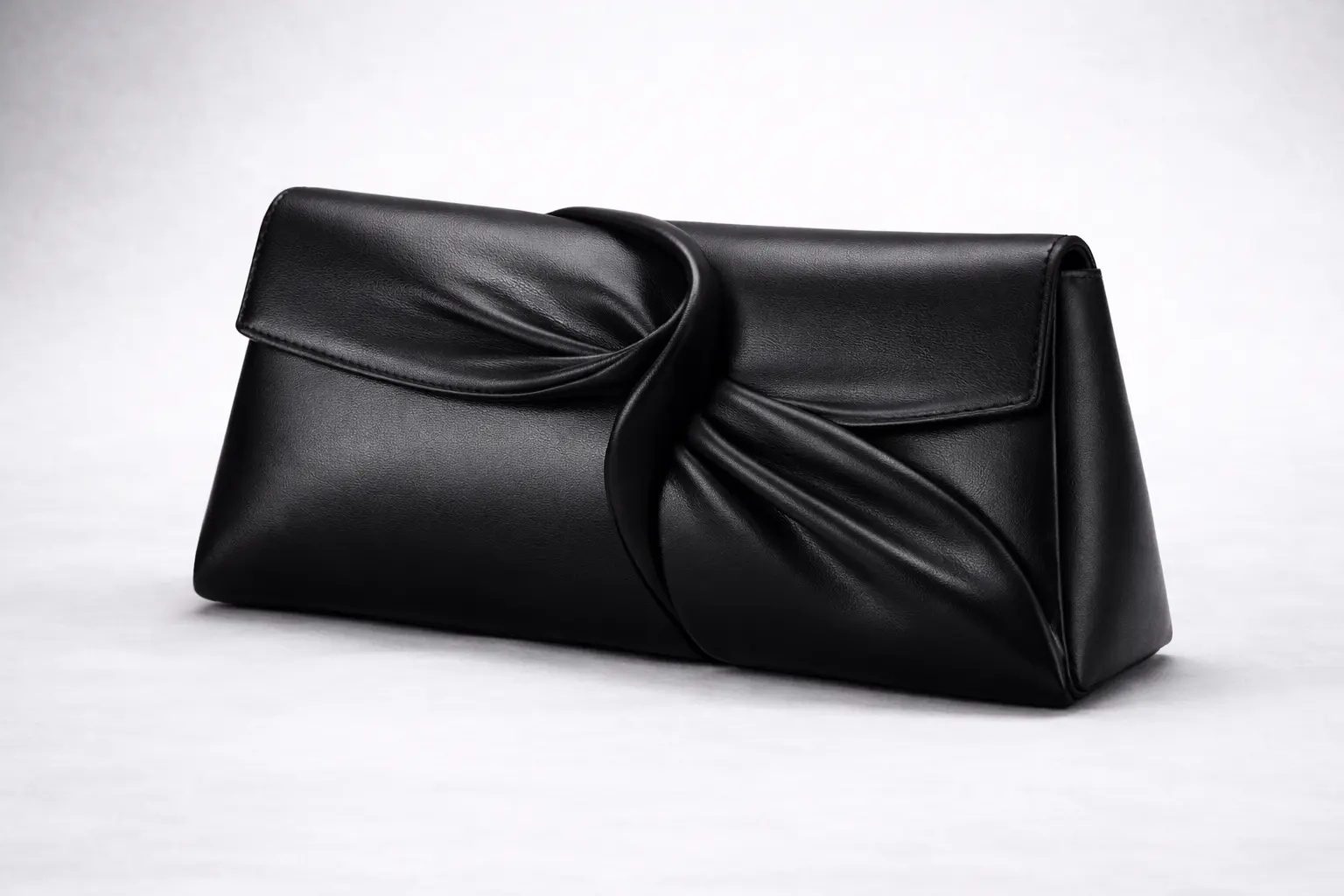 The Helix Clutch is the signature piece from The Scientist—a sculptural design inspired by the elegance of natural structure and intelligent craftsmanship. Crafted from supple black Italian nappa leather, the bag features a distinctive twist fold across the front, creating a fluid silhouette that feels both architectural and organic.